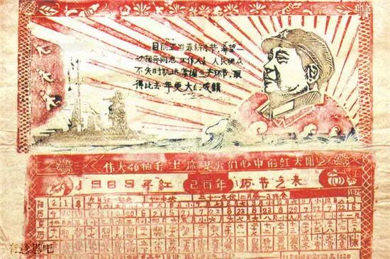 1969年的毛泽东头像日历,中间一行字为“伟大领袖毛主席是我们心中的红太阳。”
