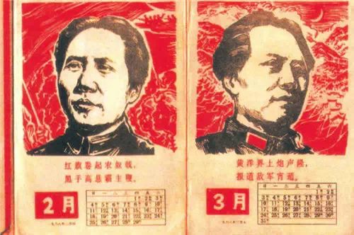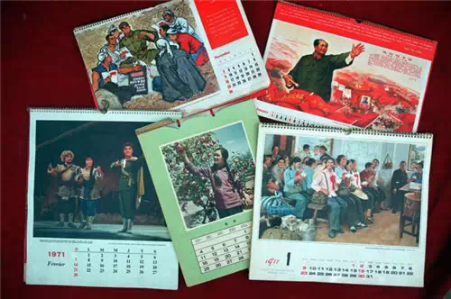 到了1960年代,文革开始。挂历上便出现了毛主席语录、毛主席接见红卫兵等内容。